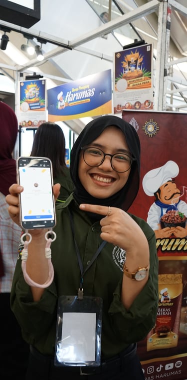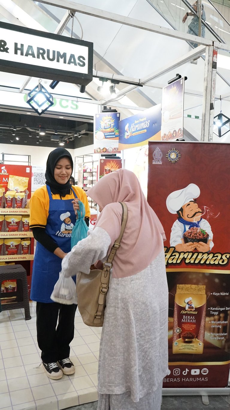 Selain itu, stand Beras Harumas juga menyajikan berbagai games seru dengan hadiah merchandise menarik yang bisa dibawa pulang oleh para pemenang. Suasana stand menjadi semakin ramai dan penuh keceriaan berkat antusiasme pengunjung yang berpartisipasi dalam berbagai permainan yang disediakan.