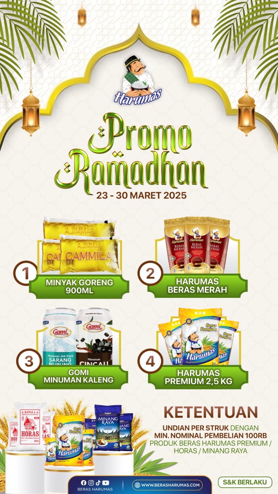 Jangan sampai ketinggalan promo-promo selanjutnya ya! Kapan lagi sobat harumas bisa mendapatkan beras berkualitas tinggi dari Beras Harumas beserta hadiah menarik untuk menyambut momen spesial dengan penuh keberkahan. Ikuti media sosial Beras Harumas di Instagram @berasharumas agar tidak ketinggalan promo-promo menarik lainnya!