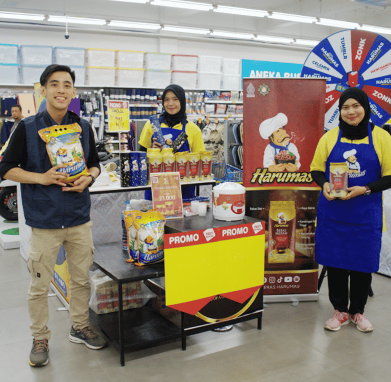 Selama kegiatan berlangsung, tim dari Beras Harumas juga aktif memberikan informasi mengenai manfaat dan perbedaan setiap varian beras, mulai dari beras premium, pera, hingga beras merah. Hal ini membantu konsumen memilih produk yang sesuai dengan kebutuhan keluarga mereka.