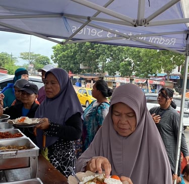 Bergeser ke area Tiban, suasana hangat begitu terasa dengan tema Makan Gratis. Beras Harumas dan tim Rumah Makan menyediakan hidangan siap santap yang diolah menggunakan beras kualitas terbaik mereka. Kegiatan ini menyasar ke warga sekitar dan pengendara yang melintas, memberikan kesempatan bagi siapa saja untuk menikmati makan siang berkualitas secara cuma-cuma sebagai bentuk syukur di hari yang penuh berkah.